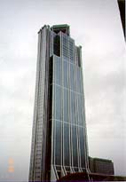 お正月に正直先生はバリに行ってきた。で、帰ってきたらいきなり東京は雪で風邪を悪化させ、ボロボロになりながらも先日京都・大阪に行ってきた。目的は京都でジョニーに会うためと、大阪でチャンキー松本氏率いる「青空太郎」というバンドを見るためである。まー東京から京都・大阪までふらふら人に会いにいったり、ライブ見に行ったり酔狂だなあと思われるかもしれないが、まあ実際酔狂である。正直先生は酒はのめないのだが、ま、いつもぼわーんとしているので酔っぱらっているようなもんである。 ま、それはいいとして京都は雨だった。ホテルの窓からみた隣のビルの屋上も雨だった。 当たり前だ。さすがのぼわーんとした先生もつらかった。しかし今回、人に会うとかライブを見たりするとかいう目的の他にすごくいきたいところが一つあったのだ。それは 「大阪の屋上に行く」ということだった。でもねえ、大阪で一番高いところなんて全然知らないのよ先生は。通天閣は前登っているしねえ。こまったー。でもきっと最近開発が進んでいるという大阪湾の近くにいけばなにかあるんじゃないかなー、と慣れない地下鉄に乗り、港を目指していると……。なんか「コスモタワー」という名称が案内図にあるぞ! なんだか未来っぽいじゃないか! しかも、地下鉄を「ニュートラム」という新しい交通システムにのりかえねばならいないぞ(また新しい乗り物が好きなのよ先生は)これまた未来っぽいじゃないか! そんなわけで先生は大阪で未来の屋上にめぐりあえるかもしれないと心躍らせつつ「コスモタワー」を目指したのでありました。 で着いたのが、名前を忘れてしまったけど大阪の人は「南港」(なんこう)と呼んでいる大埋め立て地商業地帯、 であった。その殺風景さといい、まだ作ってますという途中の感じといい、東京でいうと「お台場」にすごく似ているんだけど、大阪のほうが2倍くらいスケールがでかい感じがするのだ。それは何故かというとどでかい「コスモタワー」があるから。 なんかSFに出てくるビルみたいでバカっぽいなあ。未来はバカっぽいのかなあ。その未来っぽい建物の下はこれまた未来っぽい大ショッピングモールで、大阪の人たちは、どこかに未来を探しているような感じでざわざわ歩いていた。ま、正直先生も未来を探していたわけだが。でも、なんだか未来は見あたらない。行列が出来ていたのはアイスクリーム屋だったし。 で、正直先生はコスモタワー最上階300うんメートルのところに360度展望台があるというので一目算にのぼっていったのだった。未来はそこから見えるかもしれないなあと思った。800円はらった。 「今日はあいにくの天気で外がよく見えません」というお姉さんのたどたどしい解説をききながら高速エレベータで51階へ。そこからなんかこれまた未来な感じのエスカレーター を登ると、いよいよ360度展望台だ。 で、外を見た。市街地の方角を見ると、確かにあまり遠くは見えない。 未来なんてどこにもないなあ。期待していたようなメタリックでかっこいい光景なんかありゃしない。一言でいうと大阪は茶色だった。工業地帯から大阪を見ているせいなのかもしれないけど、なんだか土っぽいのだ。でも妙にいい光景。宇宙船みたいな、未来そのものみたいな大阪ドームが、ごちゃごちゃした工業地帯の向こうに見えているのはなんだか安心する光景だった。そしてぐるっとまわって遠くにうっすらと光っている水平線に明石大橋が見えたりする光景にもほっとした。 海だ。鉛色だけど、海はいつもいいなあ。でもなんだろうなあ、このほっとした感じは。未来は、土とか海とかにかなわないのかなあ。 雨の中を未来を探して疲れはてた正直先生はその展望台の真ん中にある喫茶店でチーズケーキとミルクティー を飲みながら、きっと建物だけが新しくなってもダメなんだな、なんて思った。建物や入れ物だけが新しくなっても所詮そこで生活するのは、一歩一歩しか前にすすめない人間なんだもん。未来って、建物だけがキンピカになってかっこよくなることではなくって、人間がよりよい人間になるために自分と環境を一緒に作り上げたところにはじめてできるもんなんだよなあ、なんて思ったのだった。 ま、そんなわけで未来未発見(ややこしい)の旅の記念に、正直先生はまたもや合成記念写真をとってしまった。 アベックばっかりが並んでいるのに恥ずかしかった。でも、嬉しかった。こういうバカな記念写真欲望だけは、今も未来も変わらないんだろうな。そういう意味ではこの合成記念写真だけが、「未来」なのかもしれない。正直先生は、今度は家人を連れてきて、また記念写真を撮ろうとバカなことを考えつつ、未来ビルから降りていったのだった。
