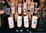 これは多分、農作地で豊作を願うための人形だと思う。つまり稲の男(おしべ)と女(めしべ)、そして作男と作女がいて、米ができる。そんなイメージの木の人形わらわらである。この人形たちは怖い。それは「作男」「作女」という農村地に古来からある暗い共同体構造とか、照明がスポット照明であるせいとかいろんな理由があると思うけど、この人形が怖いのは、やっぱり「気持ち」が感じられないからだと思う。農村の豊作祭りから切り離されてしまうと、この木のアベックたちは、ただ義理で一緒に並べられているにすぎない。ただのでくの棒にすぎない。行楽地で夜、ごはん食べにいくと、こういうでくの棒みたいなアベックがいっぱいいますよ。無理に二人でフルコース料理とか食べて。渋谷でがばがば酒飲んでいる合コンみたいなアベックもこんな感じだよな。表面にぎやかだけど、すごく醒めている感じ。義理とか、でくの棒になるために、アベックでいる必要はあるんだろうか? この木たちをみながら正直先生はそんな事を思ったのだった。